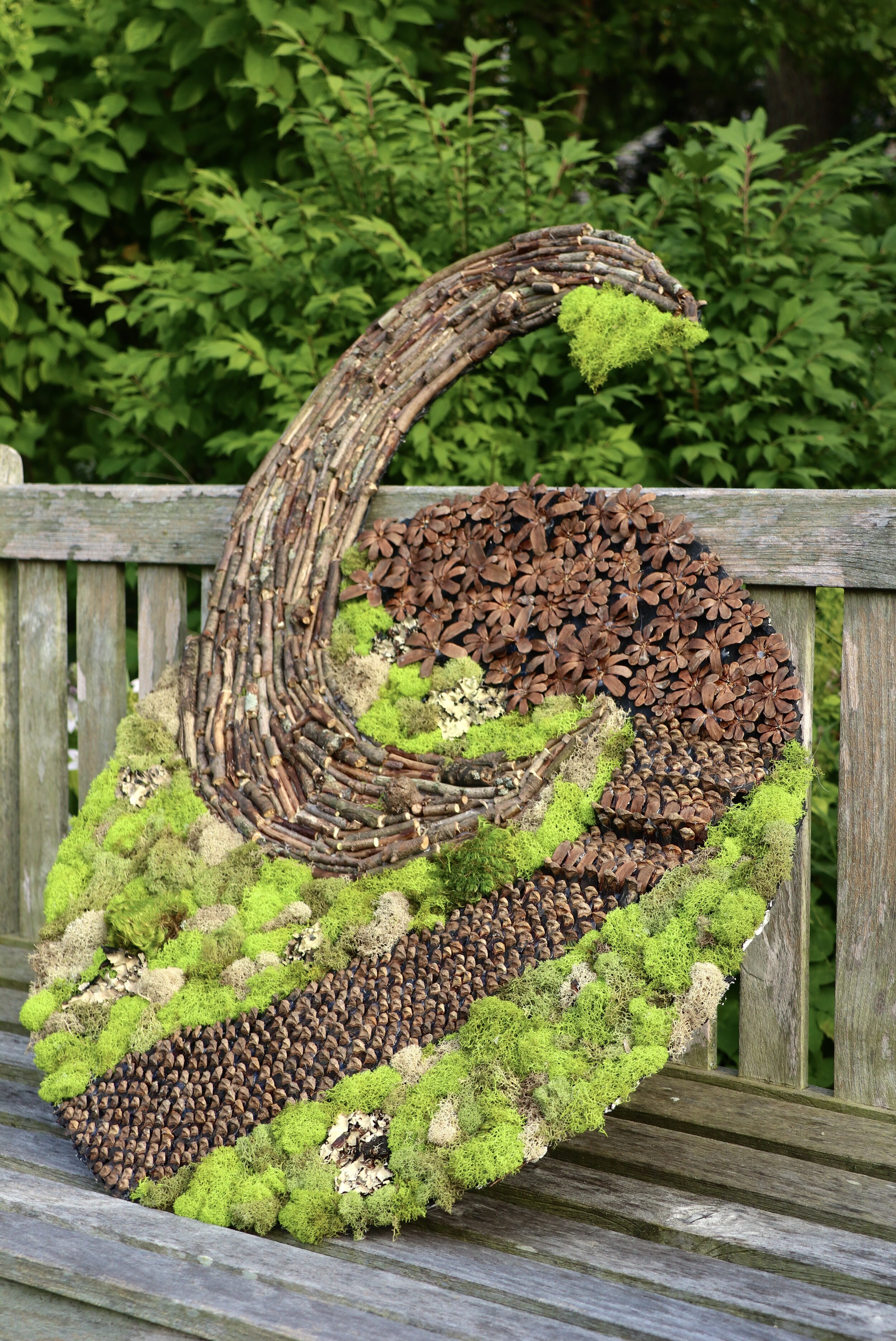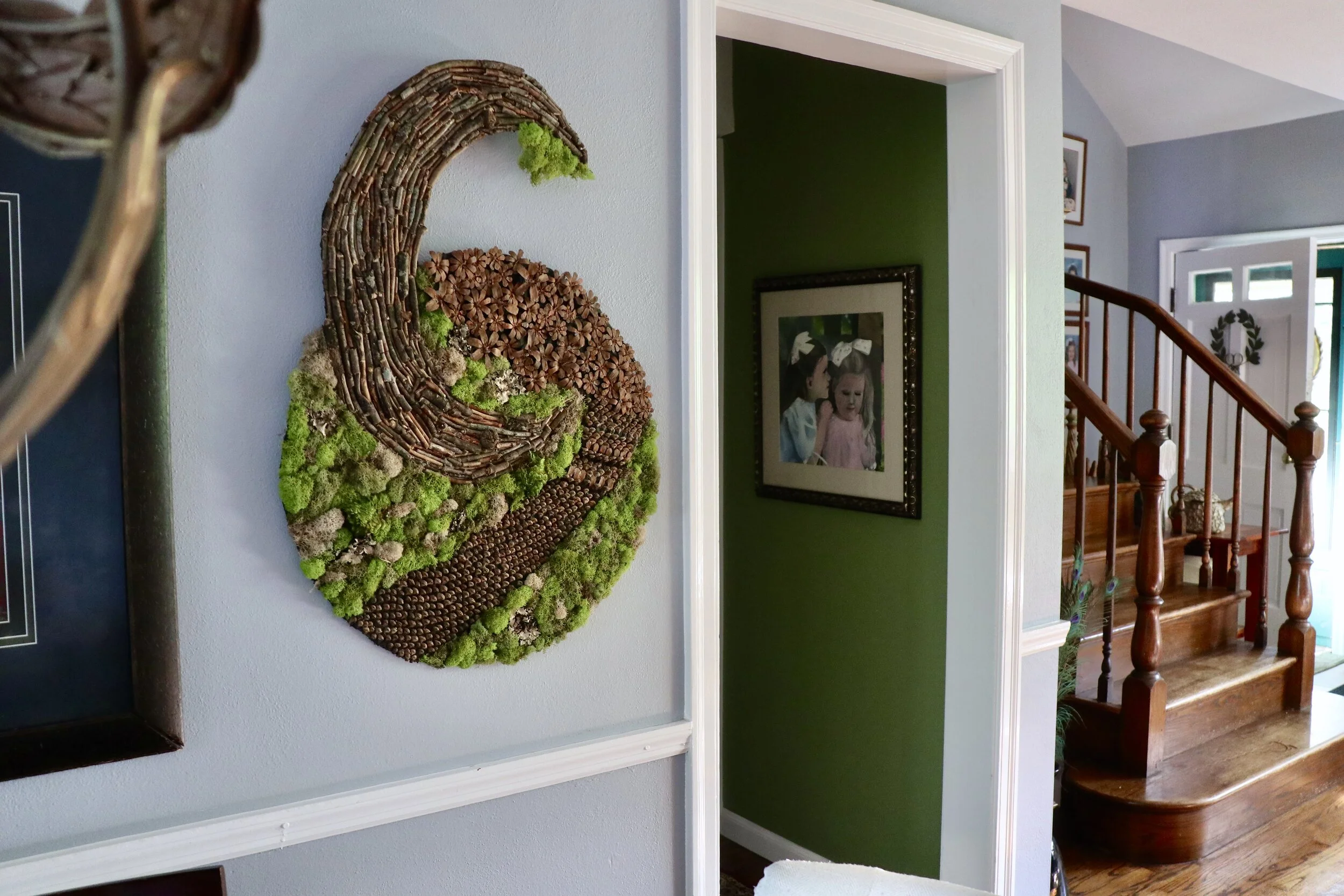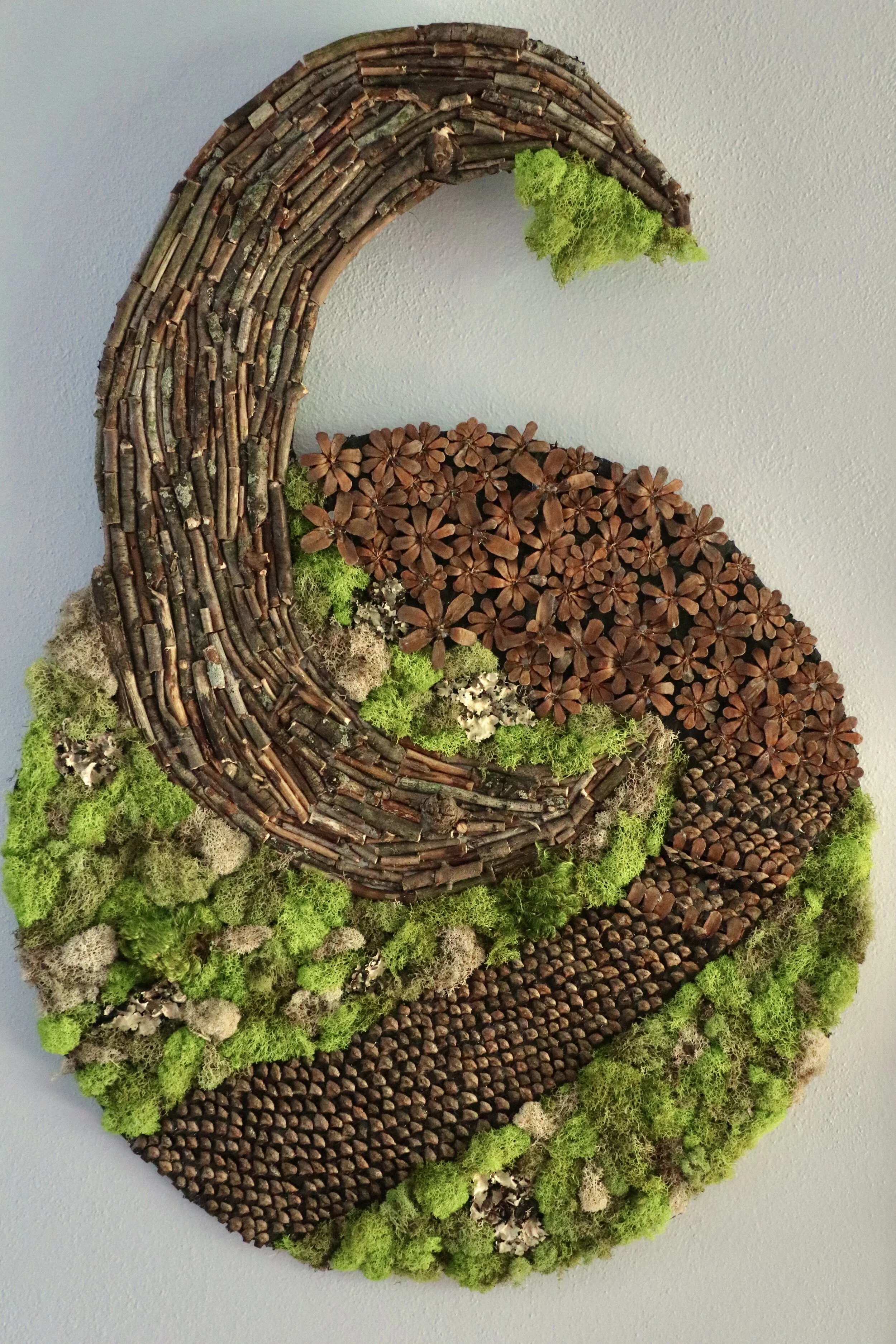 Commissioned wall art made with lichen/moss, pinecones and fallen branches.